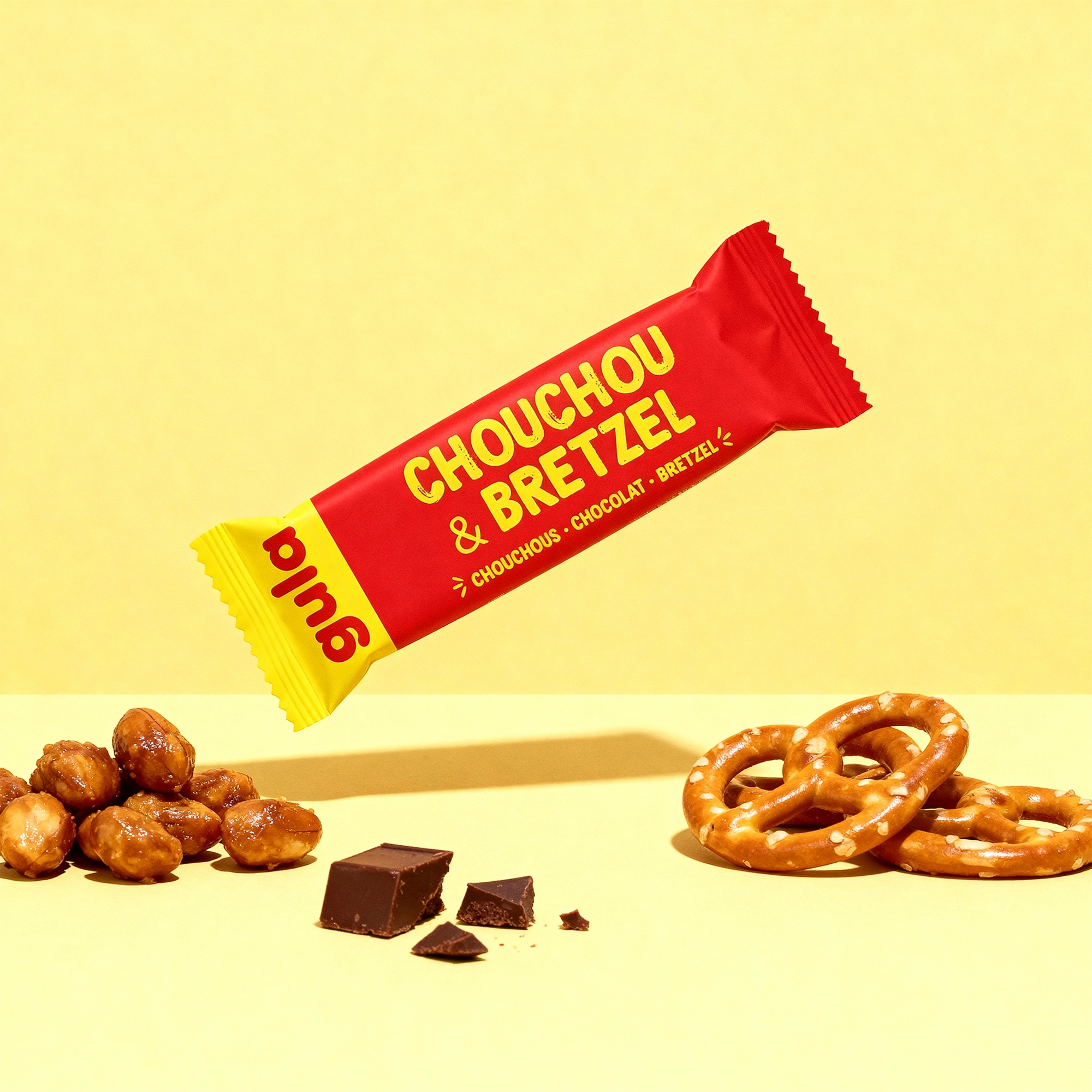 Cette barre est née d'une envie de gourmandise régressive et surprenante. Nous avons combiné le croquant des cacahuètes grillées et des bretzels, le fondant du chocolat au lait et la douceur de deux caramels différents. C'est un véritable concentré de textures et de saveurs qui réveille les papilles à chaque bouchée.